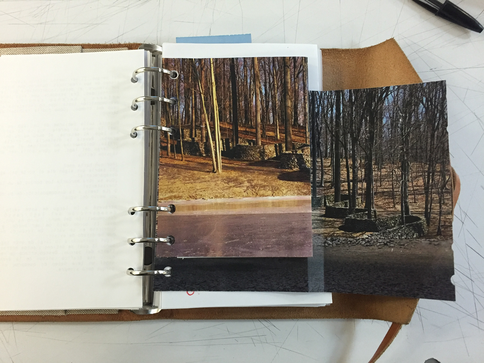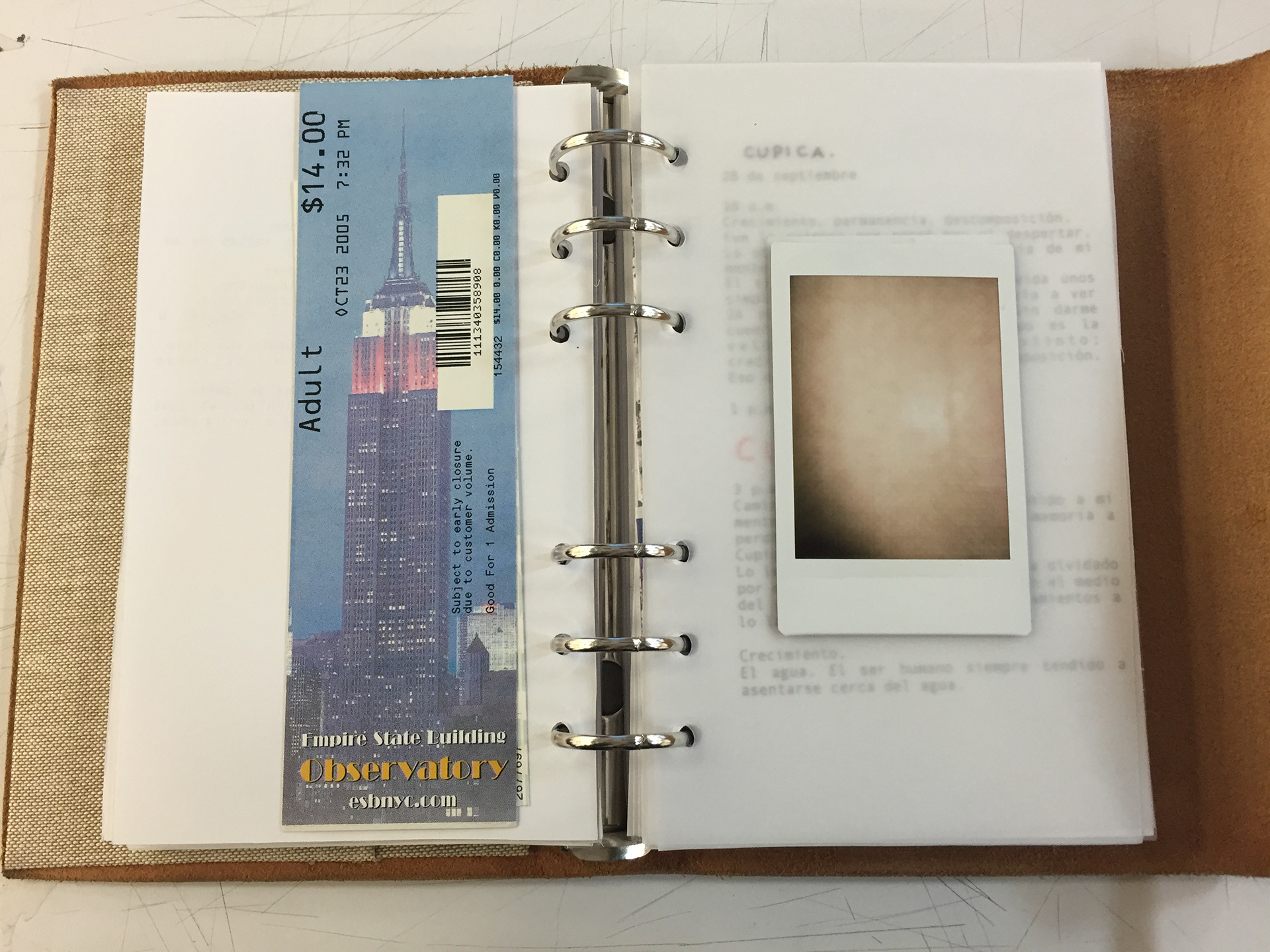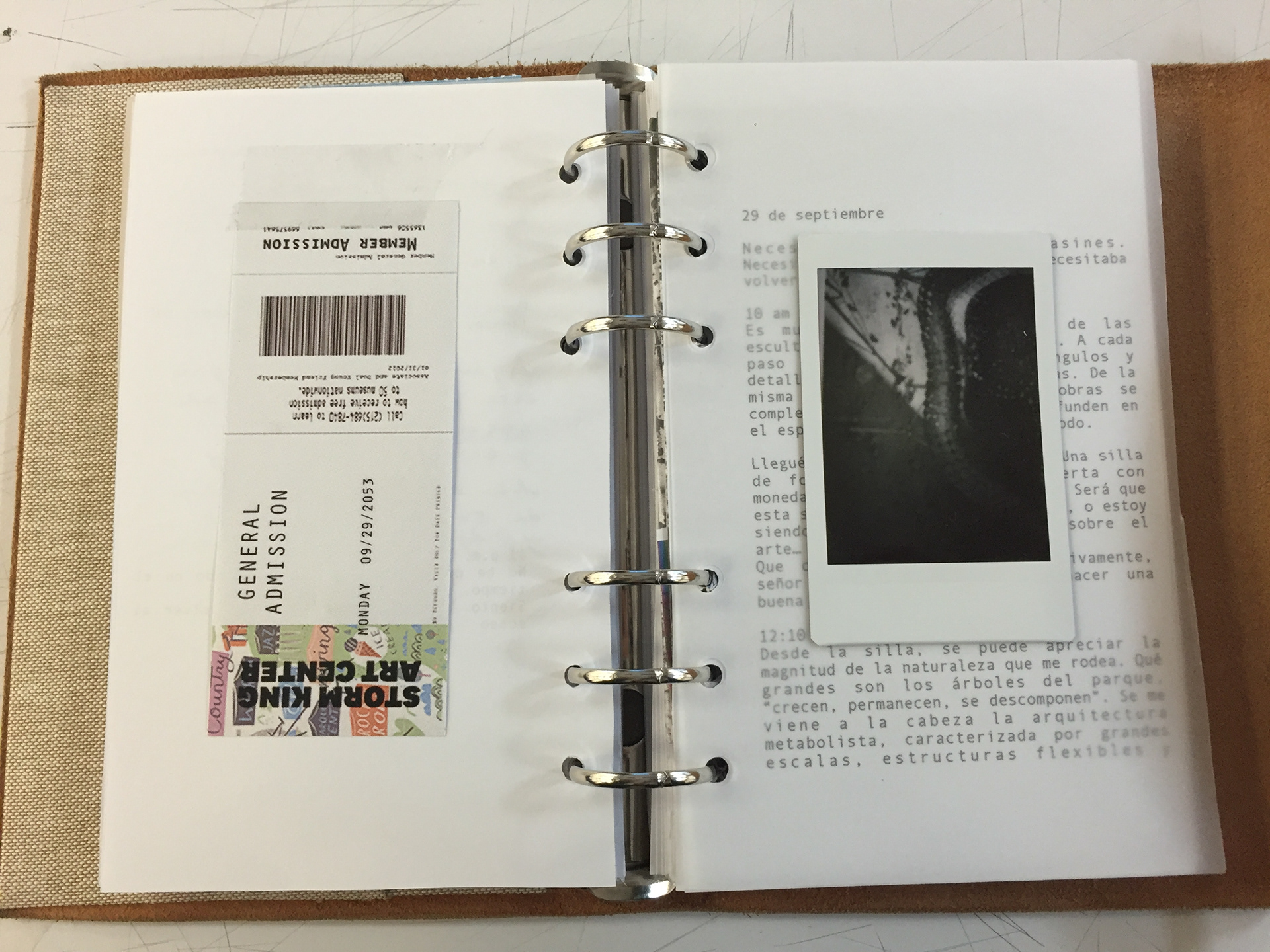 Bitacora. "8 p.m. Crecer, permanecer, descomponer. Estas 3 palabras no se han salido de mi mente. Crecer, permanecer, descomponer. Son las tres palabras de Goldsworthy. Son las tres palabras de un ciclo. Un ciclo que hace parte de cada ser u objeto de este mundo. Todo, absolutamente todo, cumple ese ciclo. Aun así, lo cumplen a distintas velocidades. Existen distintas velocidades de cambio. Empiezo a entender el motivo por el cual Eugenia necesitaba que fuera a ver la obra. "